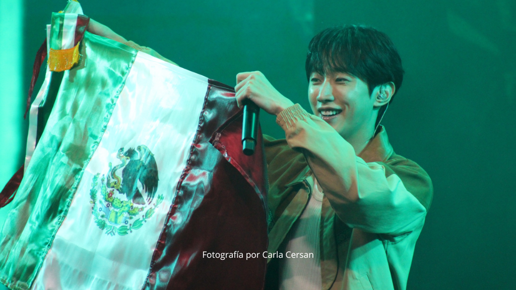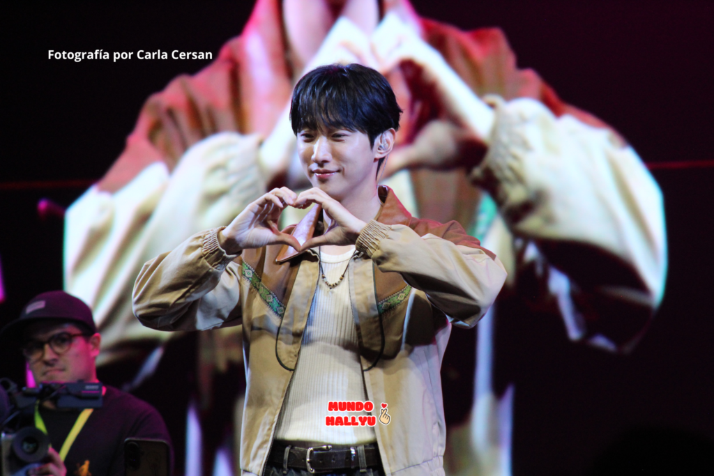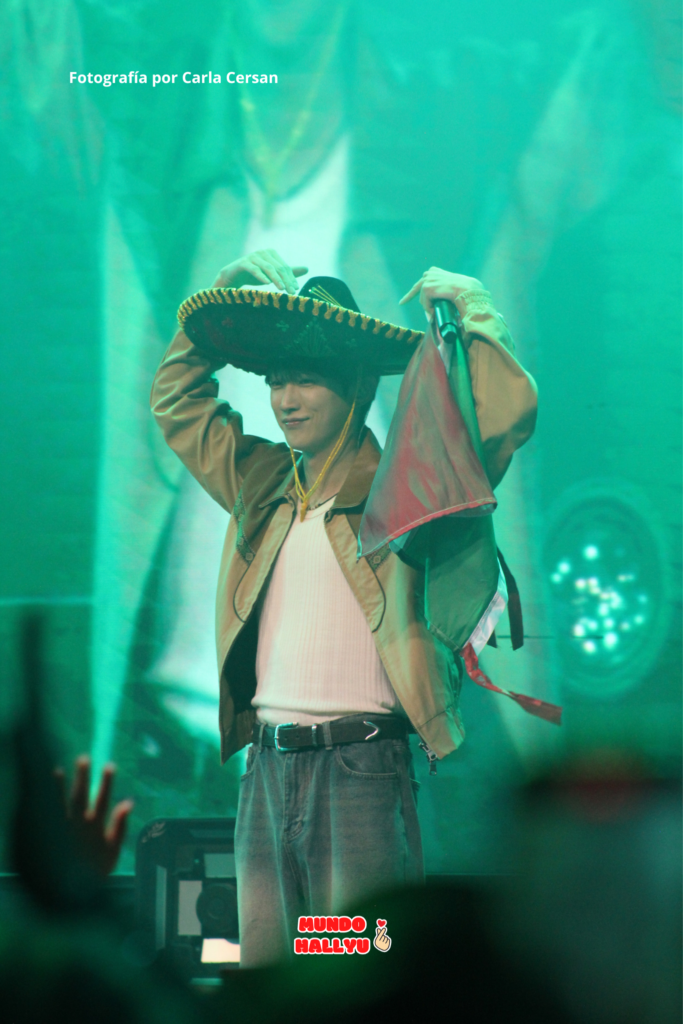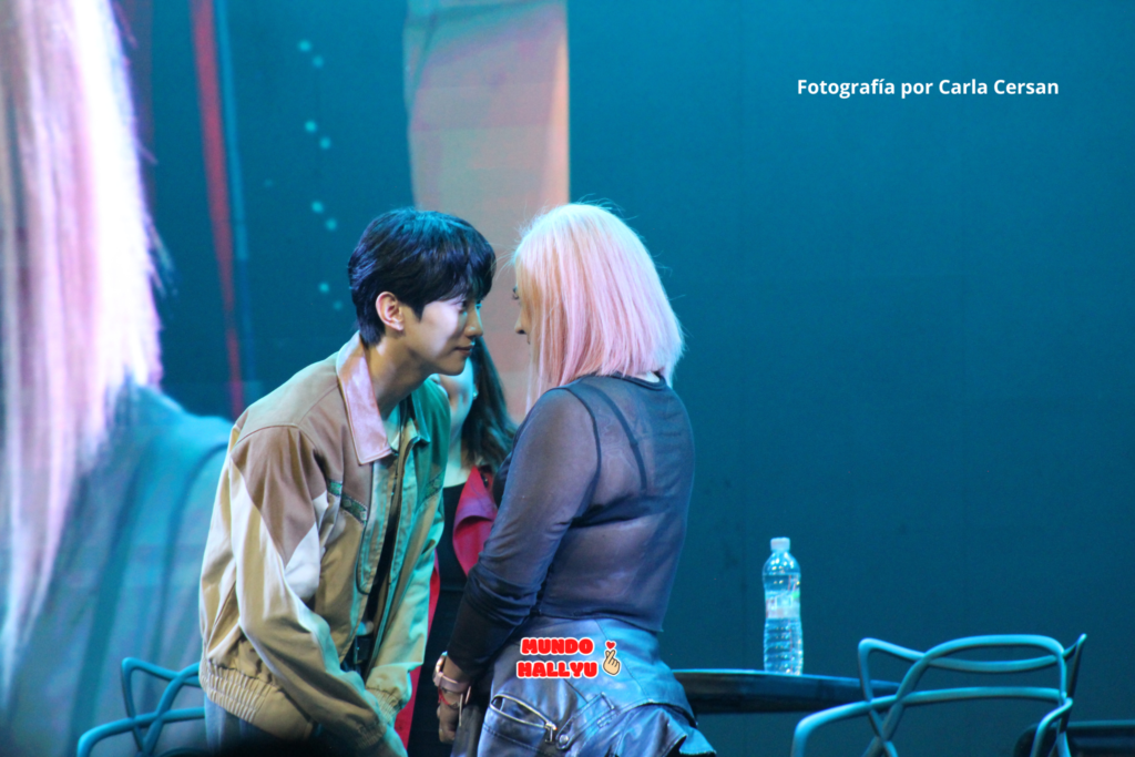 El actor y cantante también participó en divertidas dinámicas con los asistentes, donde incluso bailó “Payaso de Rodeo”, protagonizó un duelo de miradas, y sorprendió al público regalando playeras oficiales diseñadas por él mismo, así como algunos “gat”, el tradicional sombrero coreano.